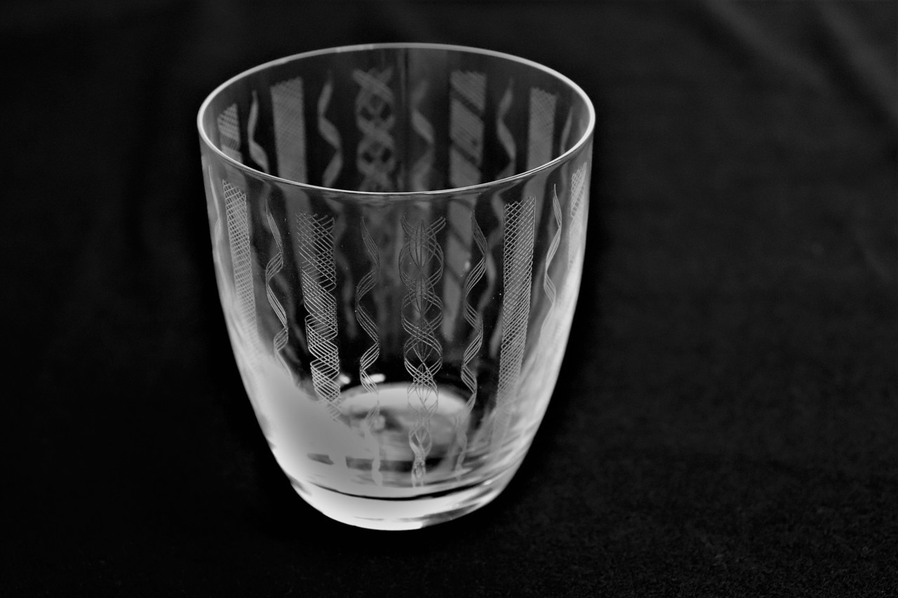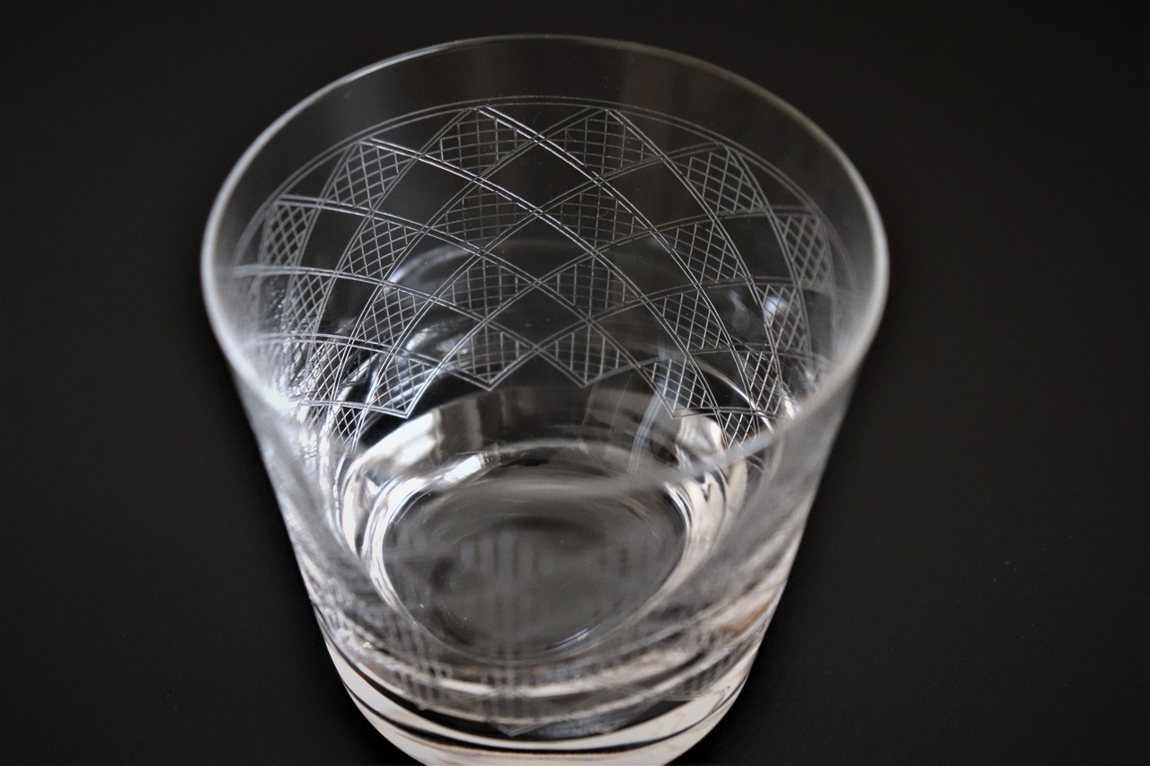 斜め格子模様をパントエッチングで入れたミニオールドグラスになります。